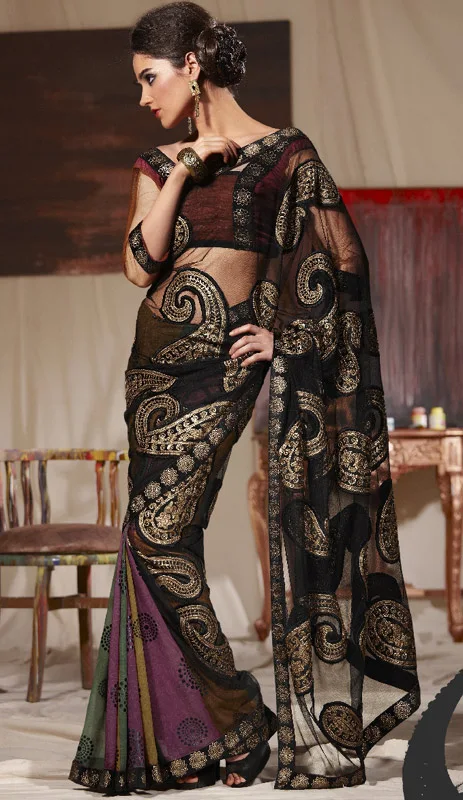 black shimmer georgette saree with blouse
